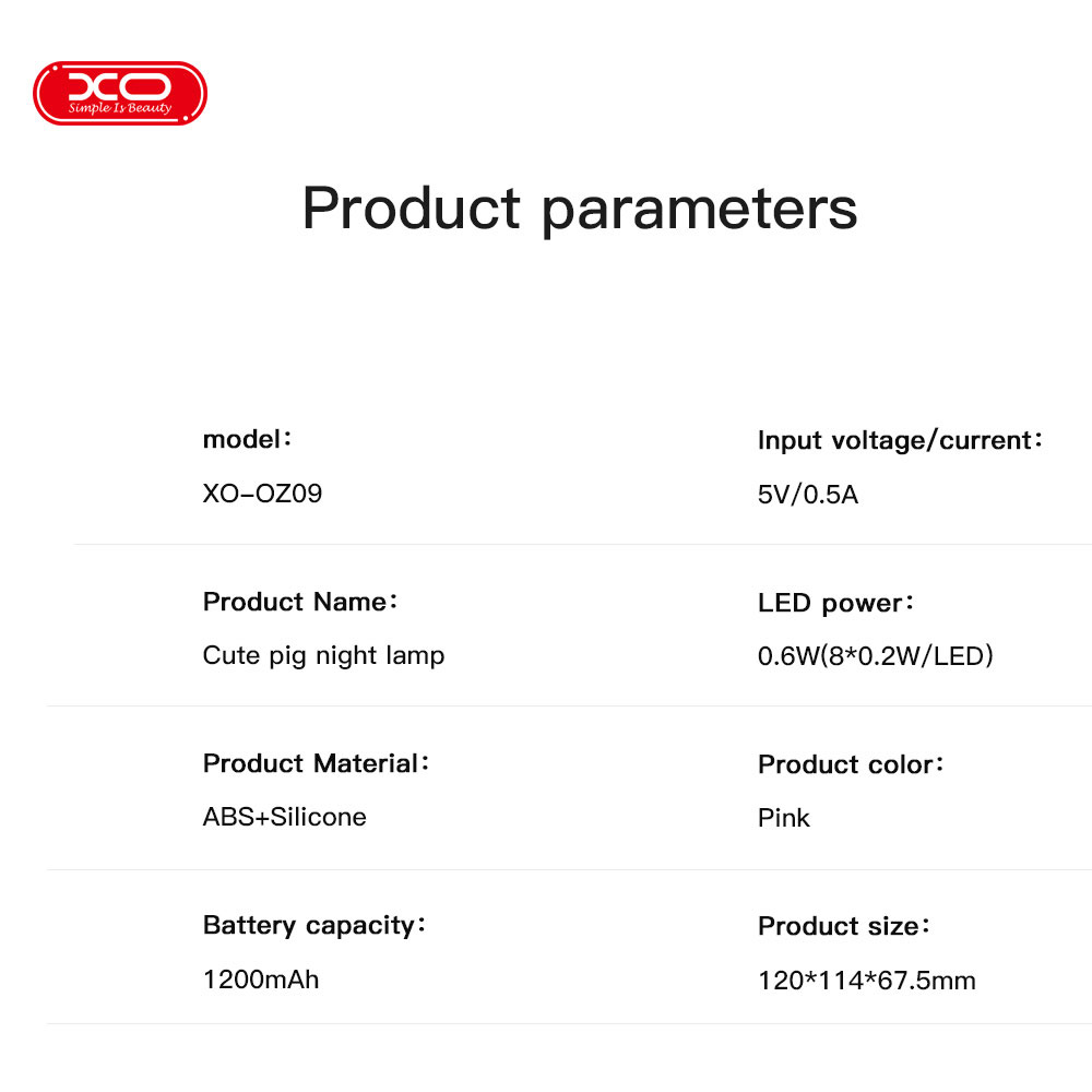 ویژگی های چراغ خواب فانتزی رومیزی شارژی طرح خوک ایکس او XO-OZ09