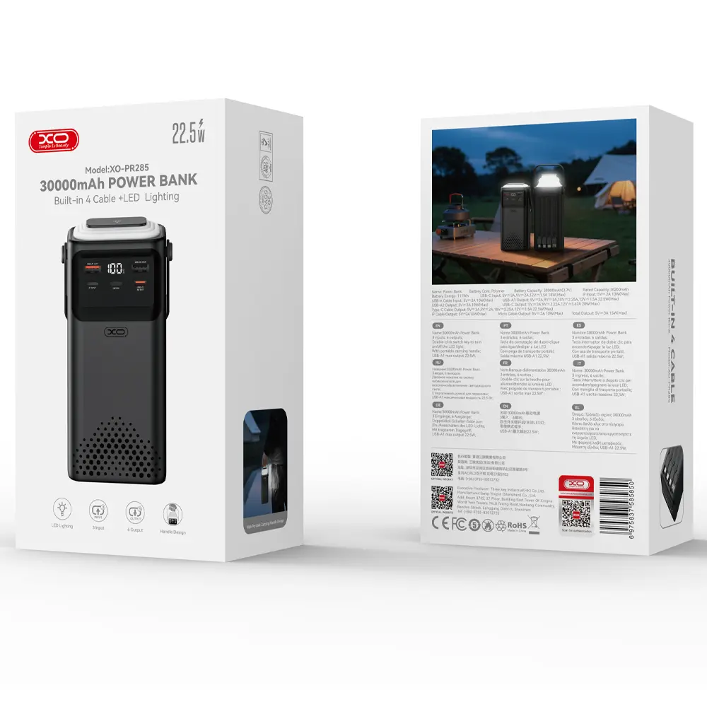 XO XO-PR285 Built-in 4 + LED Lighting Power Bank 30000mAh 22.5W