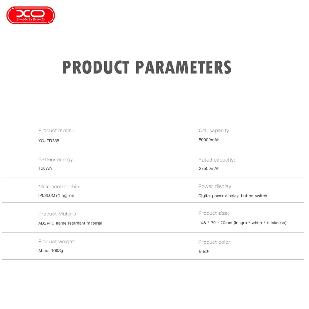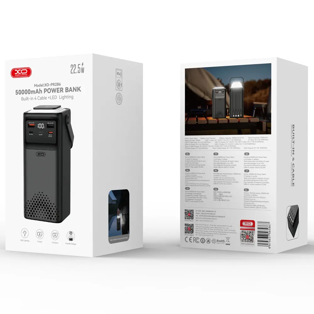 XO XO-PR286 Built-in 4 + LED Lighting Power Bank 50000mAh 22.5W